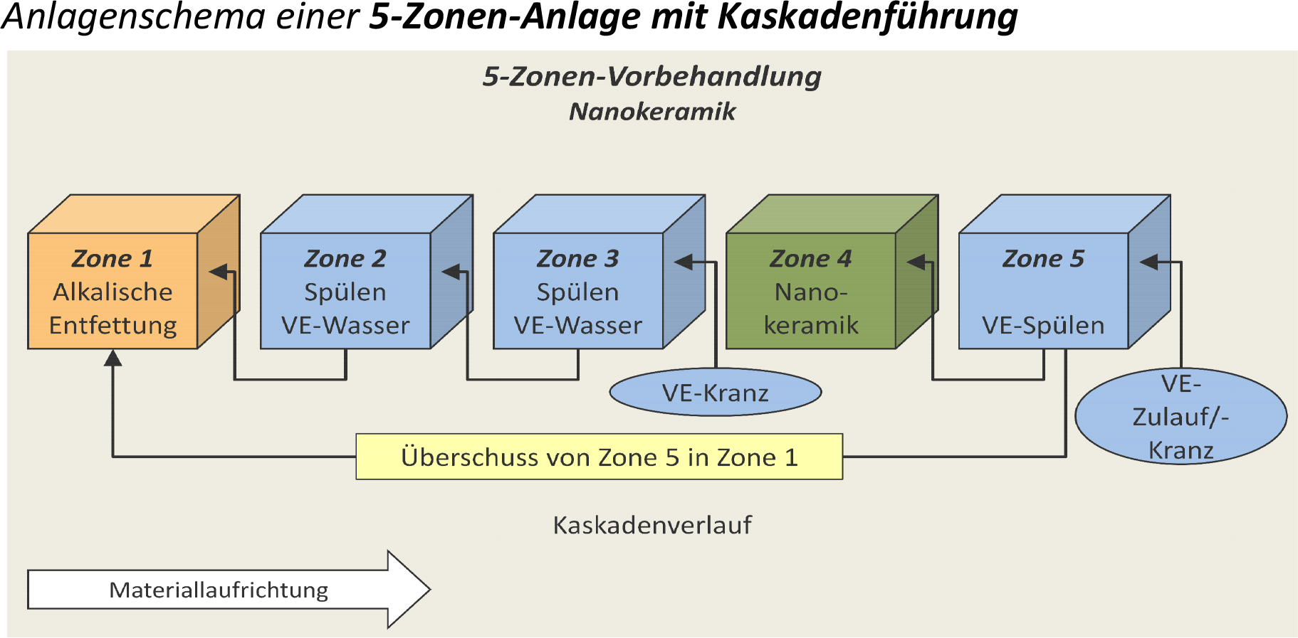 Es kommt im Gegensatz zu anderen Vorbehandlungen (z.B. Zinkphosphatierung, Eisenphosphatierung) ohne den Einsatz von toxischen Schwermetallen, Lösemitteln und Phosphaten aus. Darüber hinaus eignet es sich perfekt für den Einsatz auf Stahl-, Zink- und Aluminiumoberflächen. In unserer hochmodernen Vorbehandlungsanlage durchläuft das Werkstück eine Vorbehandlung unter Einsatz von Nanotechnologie, in dessen Verlauf es gereinigt, nanokeramisch behandelt und mehrfach gespült wird.